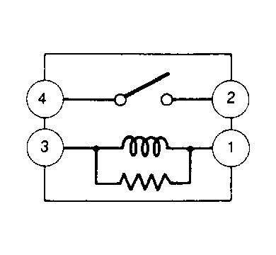 2. Apply battery voltage across terminals No. 1 and No. 3. Continuity should exist between terminals No. 2 and No. 4. If continuity is not as specified, replace relay.