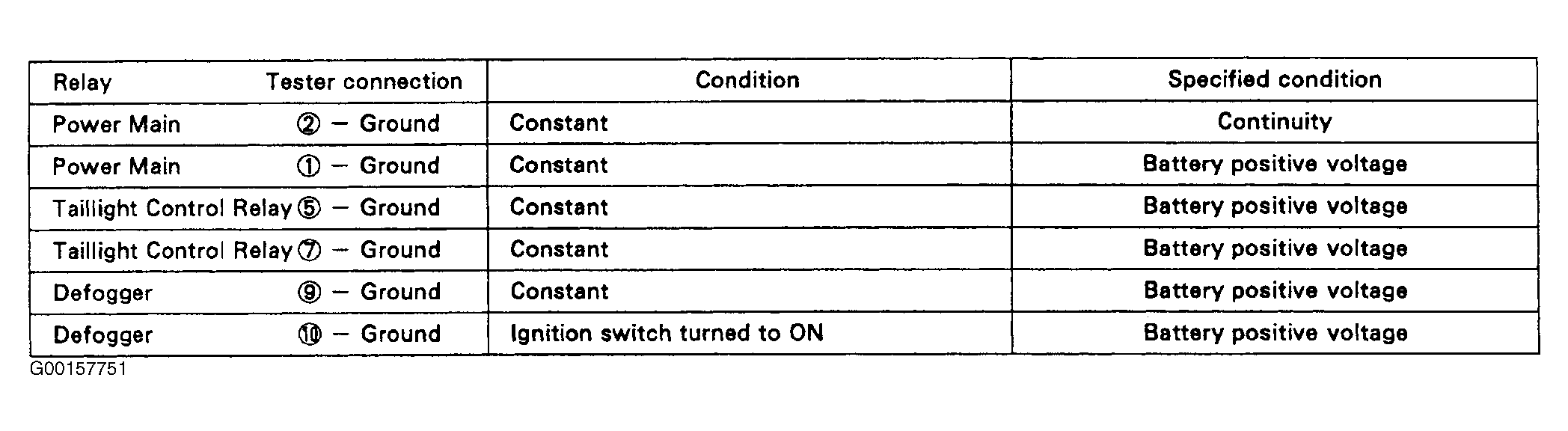 Remove power main relay. Power main relay is located on back side of junction block No. 1, under driver's side of instrument panel. See Fig 1. If the circuit is not as specified, inspect the circuits connected to other parts. See WIRING DIAGRAMS .