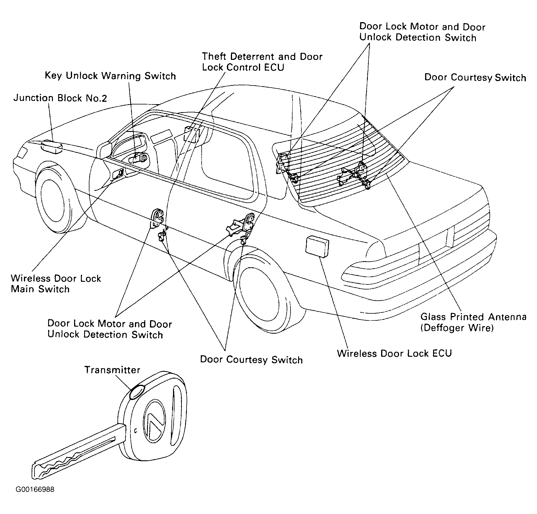 | Wireless Door Lock ECU | In left side of trunk. See Fig 1. |