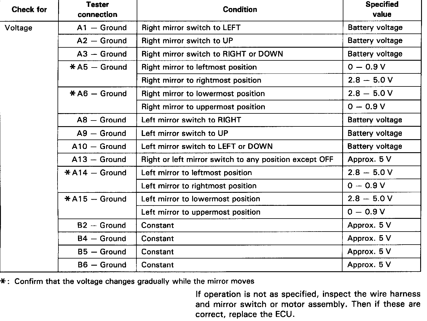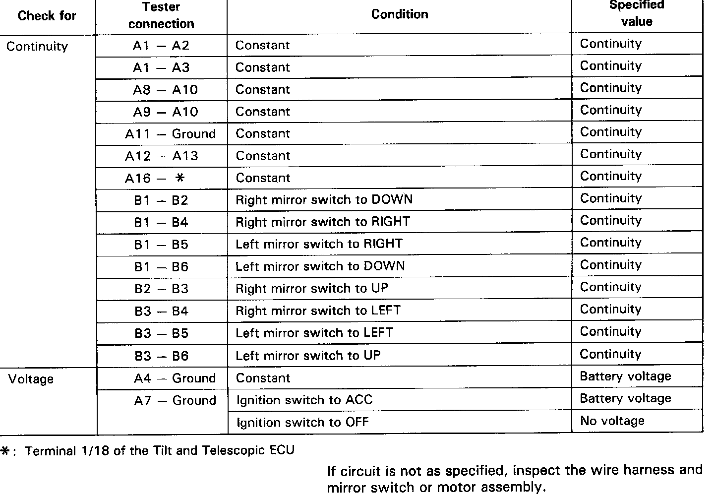 Disconnect the connectors from the ECU and inspect the connector on the wire harness side as shown in the chart below.