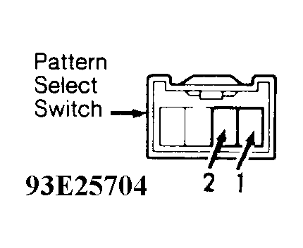 - Access and disconnect pattern select switch connector. See Figure. Using a DVOM, check continuity between pattern select switch terminals No. 1 and 2. See Fig 1. Continuity should not be present when PWR (power) is selected, and continuity should be present when NORM (normal) is selected.