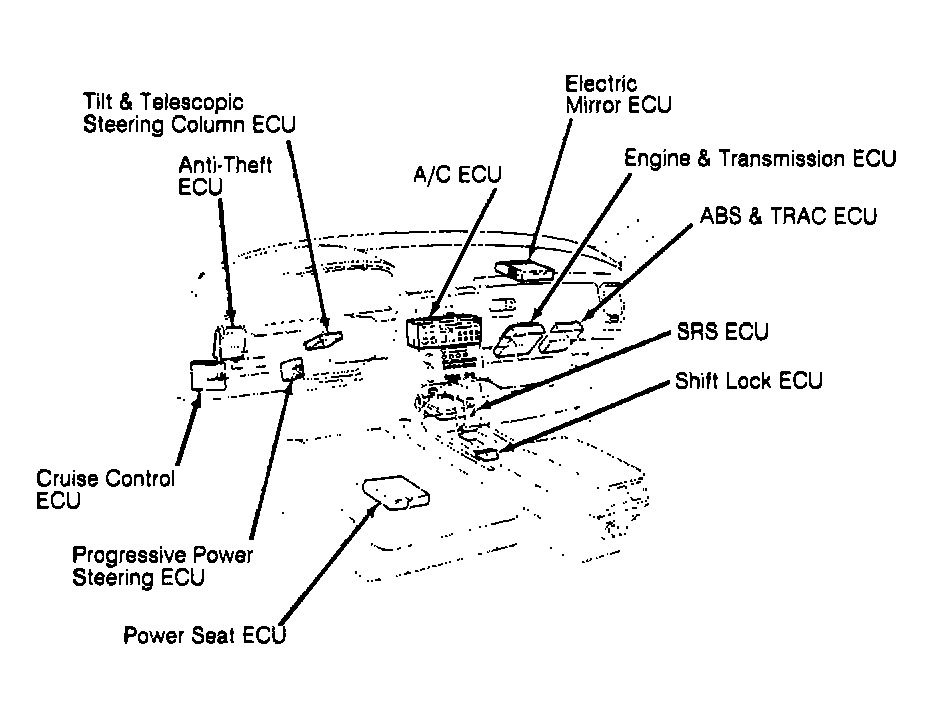 | Control Units & Sensor Location | Under center console, on base of gear selector. See Figure. | ||