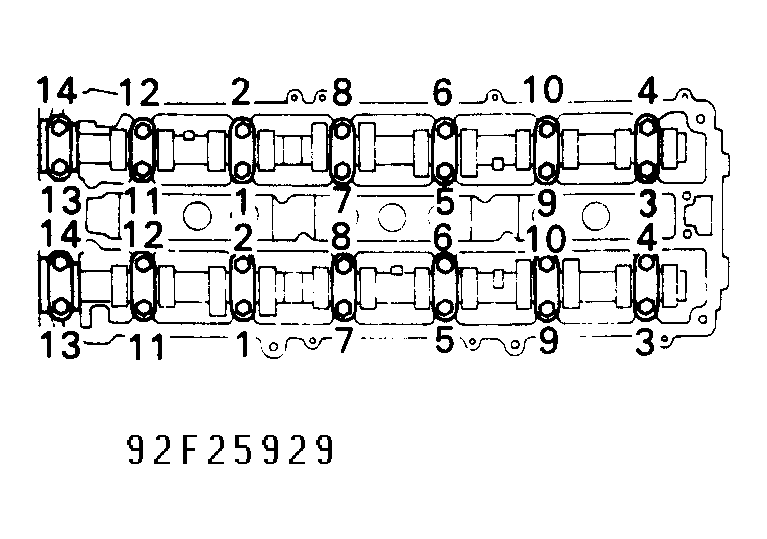 7. Ensure cam bearing cap bolts are fully tightened to 14 ft. lbs. (20 N.m), in correct order. See Fig 1.