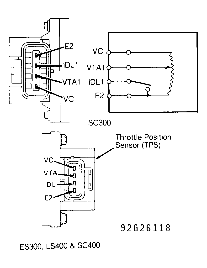 Home >> Lexus >> 1992 >> SC 300 Automatic >> Repair and Diagnosis >> Engine Performance >> System >> Engine Controls - System/Component Tests >> Engine Sensors & Switches >> Throttle Position Sensor (TPS)