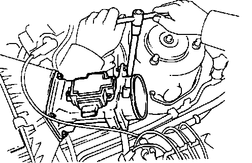 - Disconnect power steering air hose from timing belt cover.