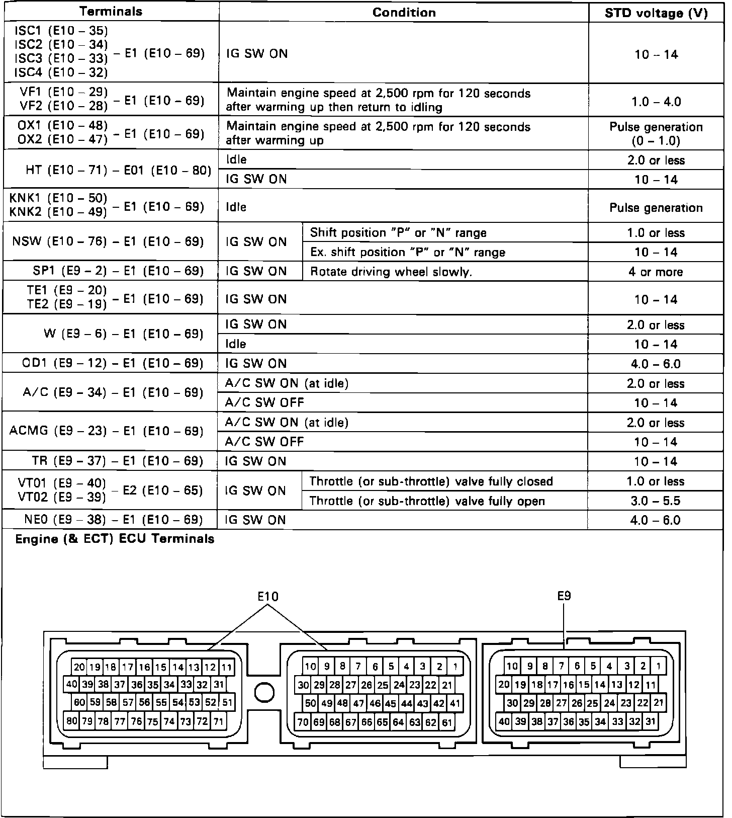 Home >> Lexus >> 1992 >> SC 300 L6-3.0L (2JZ-GE) >> Repair and Diagnosis >> Powertrain Management >> Computers and Control Systems >> Engine Control Module >> Testing and Inspection >> ECU Pin-Out Tests