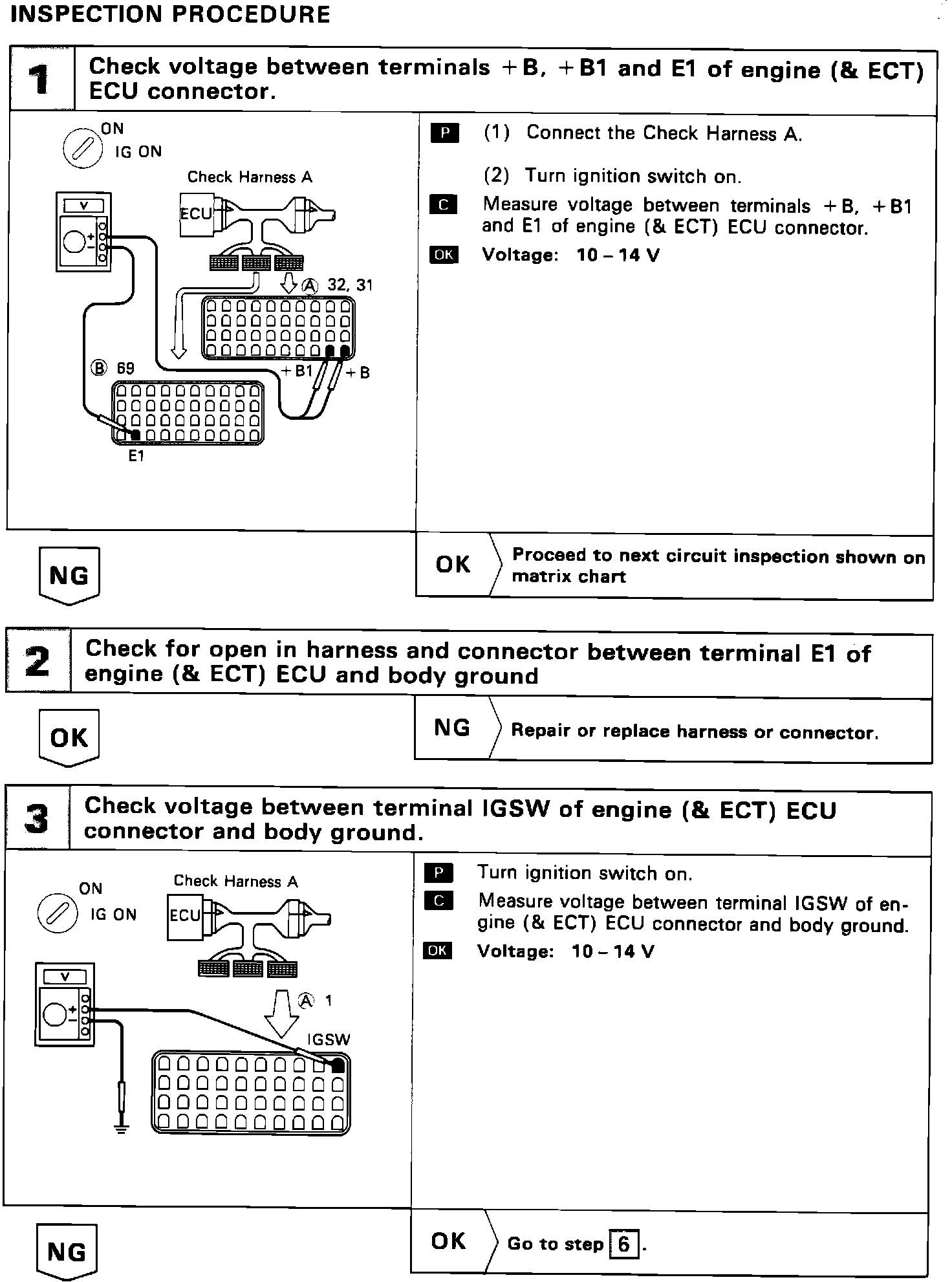 Home >> Lexus >> 1992 >> SC 300 L6-3.0L (2JZ-GE) >> Repair and Diagnosis >> Powertrain Management >> Computers and Control Systems >> Engine Control Module >> Testing and Inspection >> ECU Power Supply