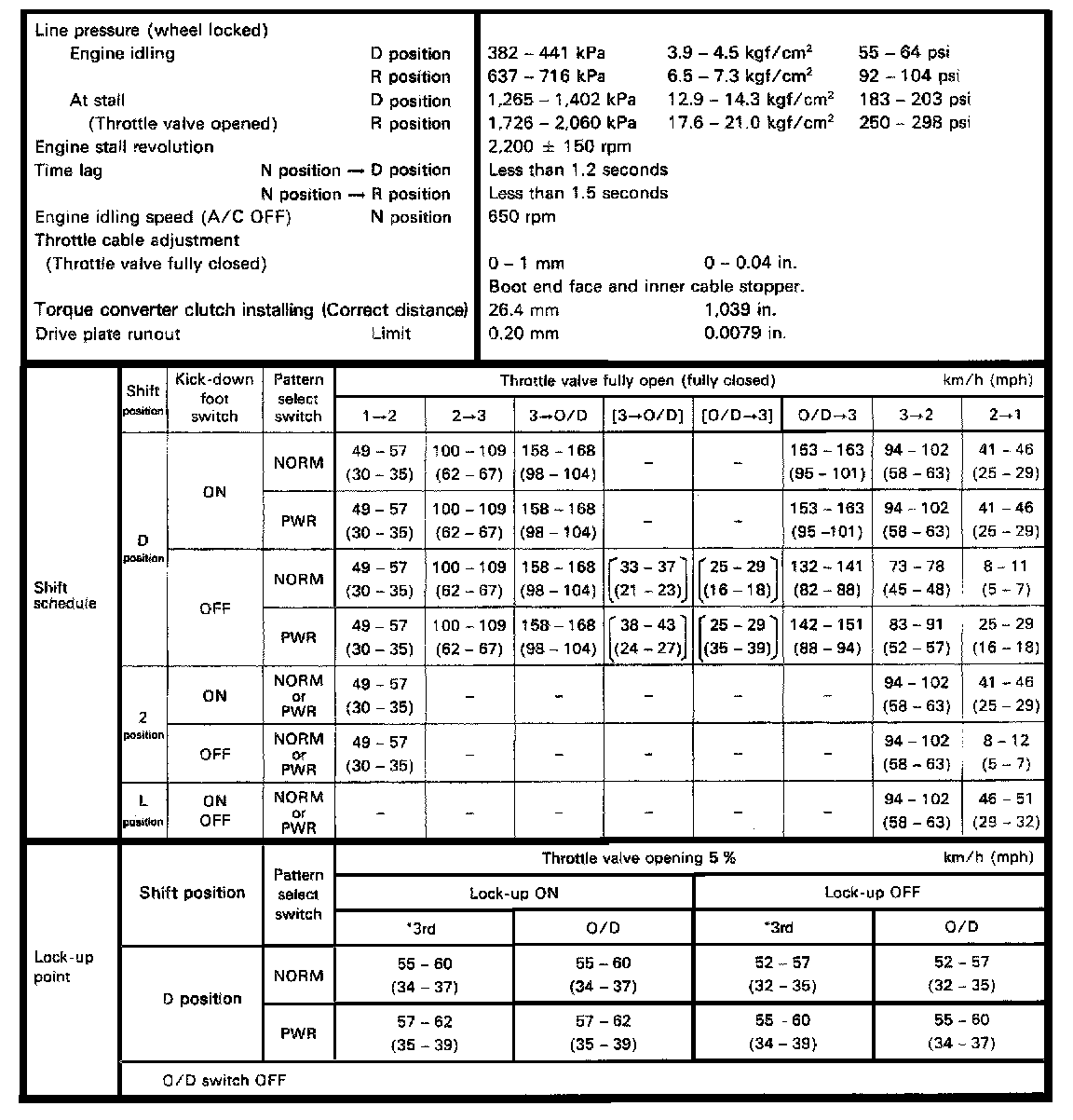 A340E 4-spd A/T, Line Pressure/ Shift Schedule: