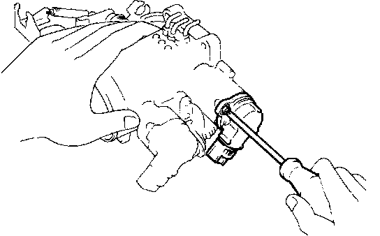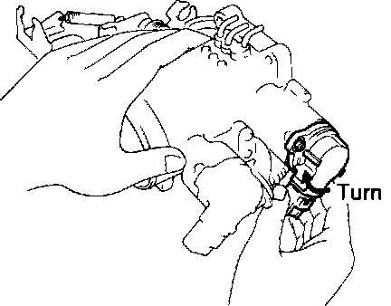 - Insert a 0.40 mm (0.016 in.) feeler gauge, between the throttle stop screw and stop lever.