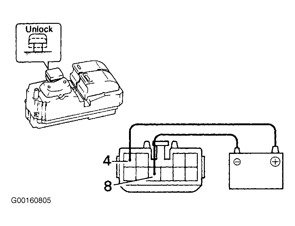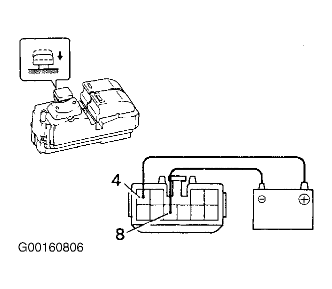 2. Connect the positive (+) lead from the battery to terminal 4 and the negative (-) lead to terminal 8, and check that all the illuminations light up. See Fig 1.