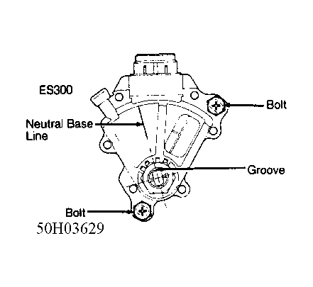 If vehicle starts in positions other than Neutral and Park, adjust neutral start switch. Loosen neutral start switch bolt and set shift lever to "N" position. Align groove and neutral base line on neutral start switch. See Fig 1. Hold switch in position and tighten bolt to 48 INCH lbs. (5.4 N.m).