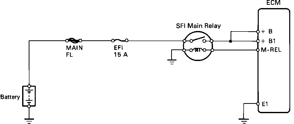 The SFI main relay controls the ECM power supply.