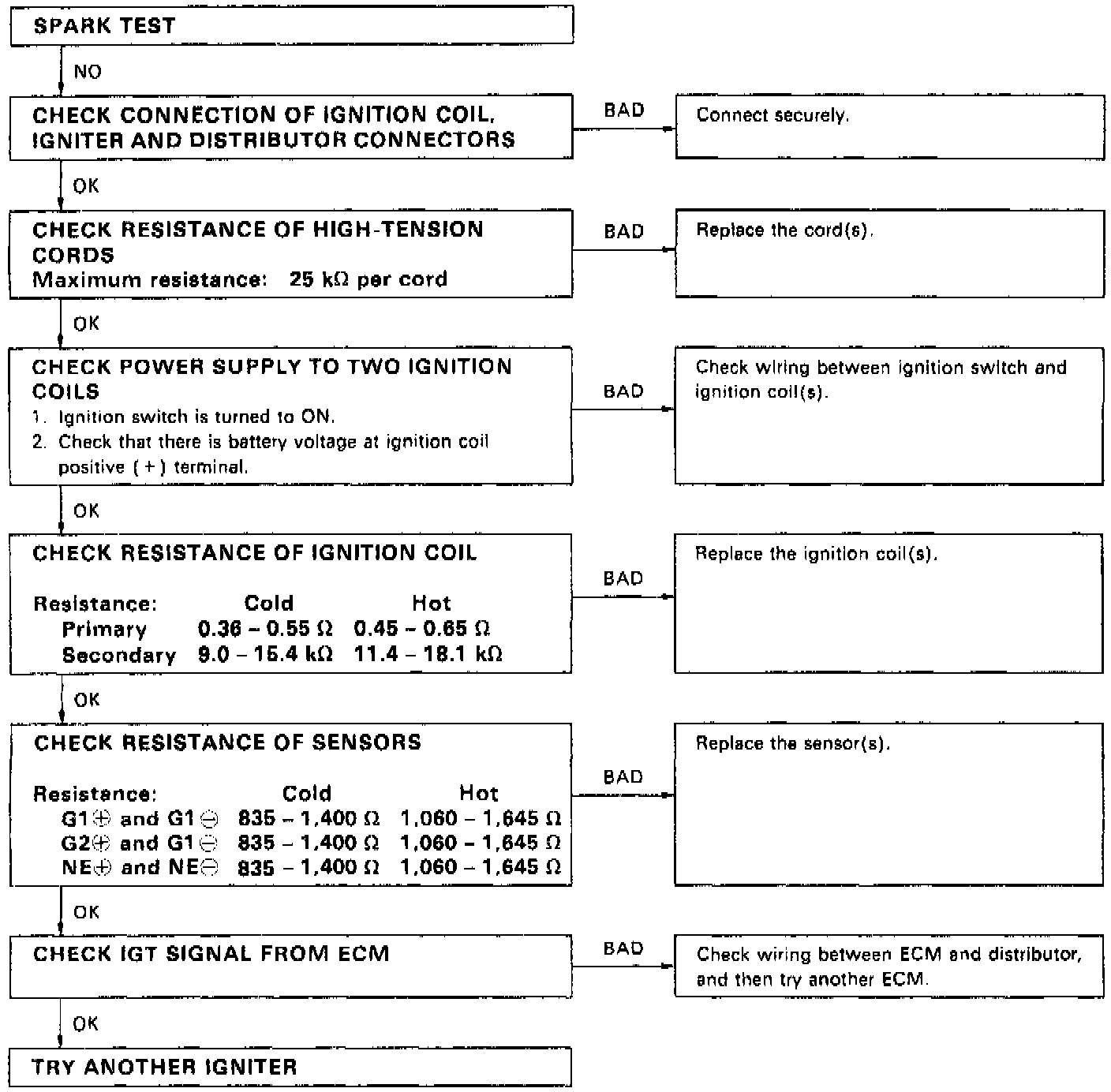 4. If the spark does not occur, perform the tests as illustrated.