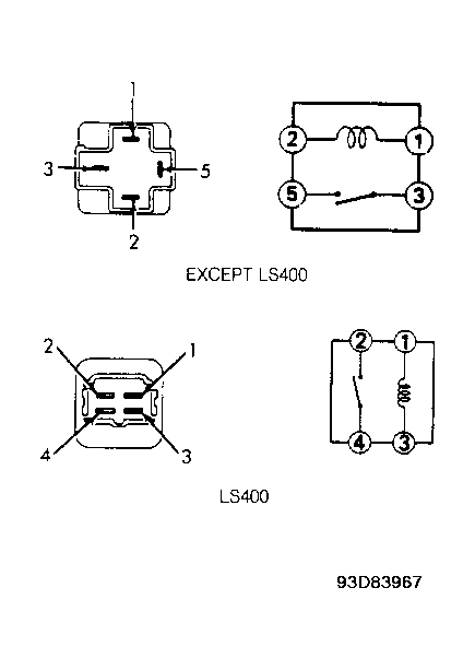Remove power window relay from underhood fuse/relay box. Using a DVOM, check for continuity between terminals No. 1 and 3. Check for no continuity between terminals No. 2 and 4. See Fig 1. Using jumper wires, connect terminals No. 1 and 3 to battery voltage and ground. If continuity does not exist between terminals No. 2 and 4, replace relay.