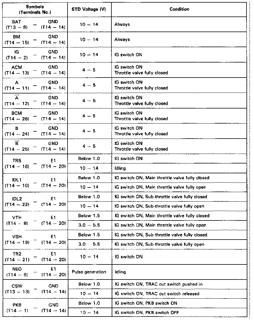 Fig. 47 TRAC ECU Terminal Values (Part 1 Of 2):