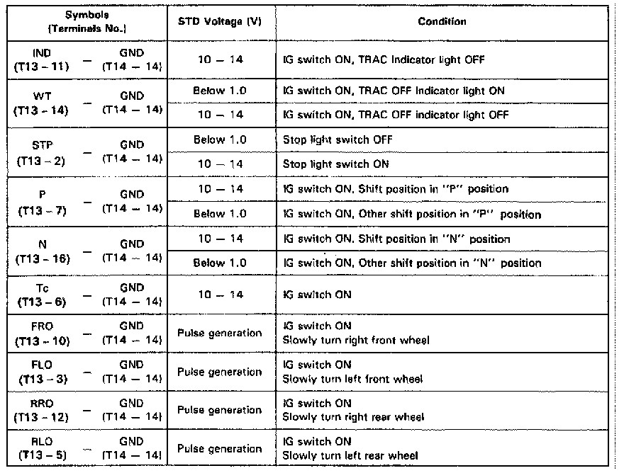 Fig. 47 TRAC ECU Terminal Values (Part 2 Of 2):