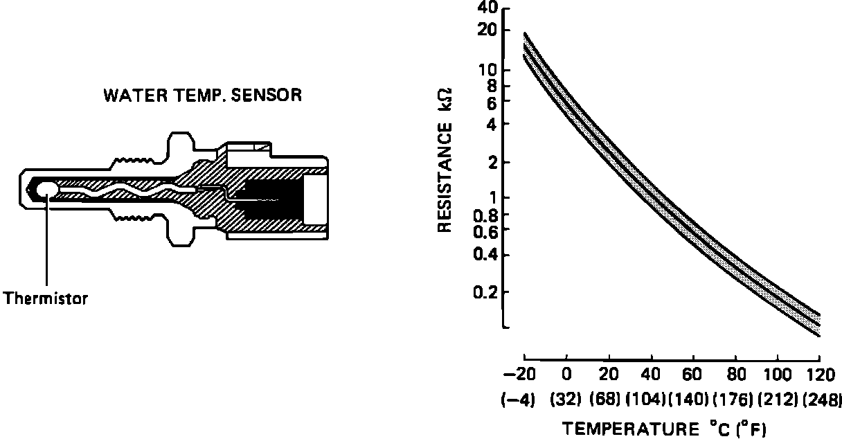The engine coolant temperature sensor measures engine temperature by sensing water temperature. The ECM uses this information for determining the proper air/fuel mixture for all conditions.