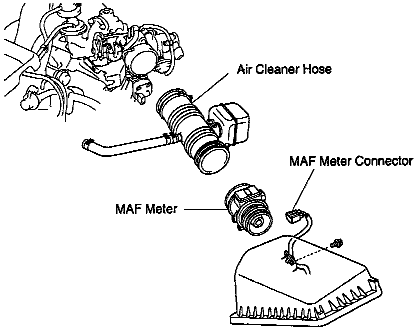 The Mass Air Flow Meter is located in the air intake between the Air Cleaner and the Throttle Body.