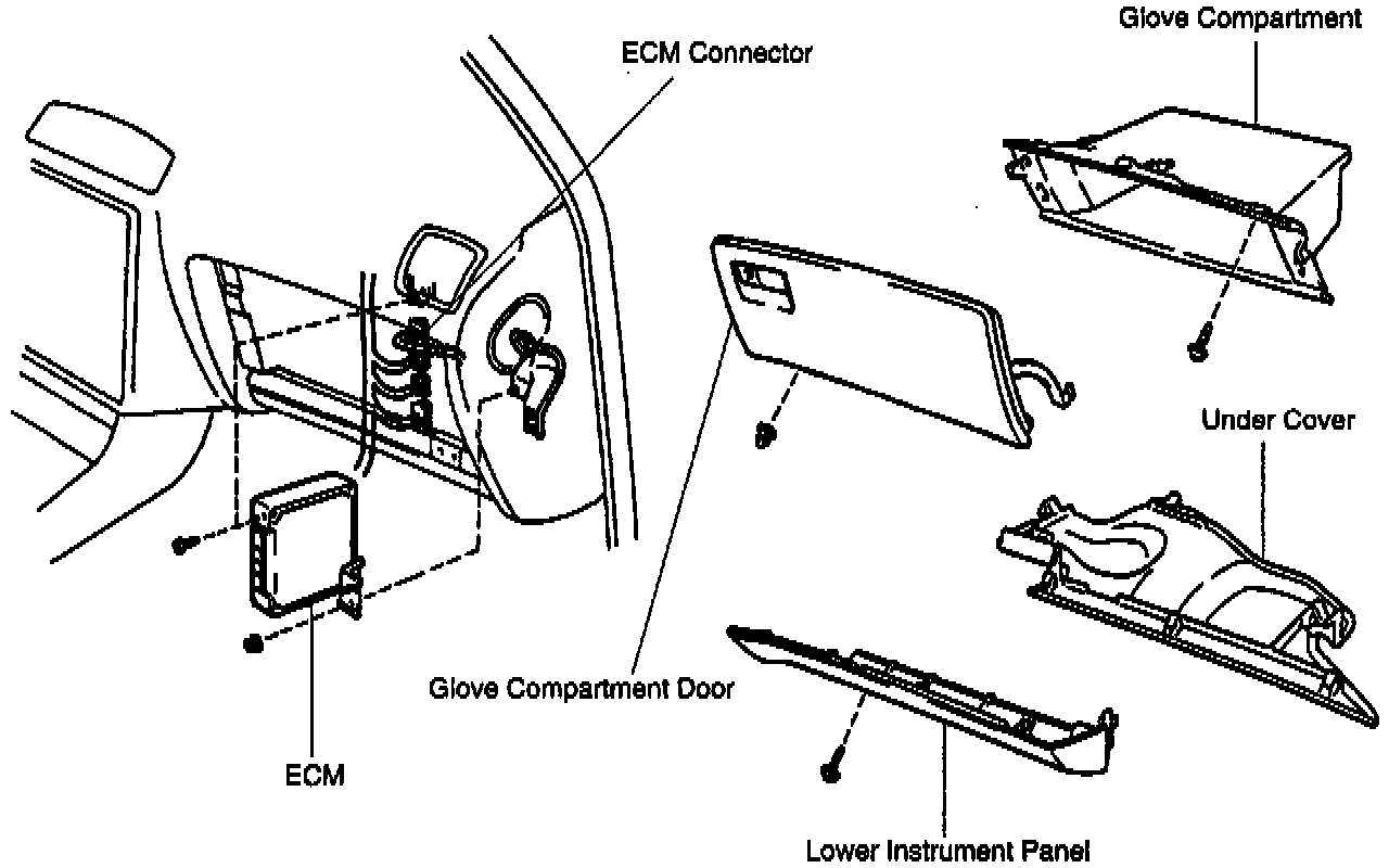 CAUTION: Work must be started after 90 seconds from the time the ignition switch is turned to the LOCK position and the negative (-) terminal cable is disconnected from the battery.