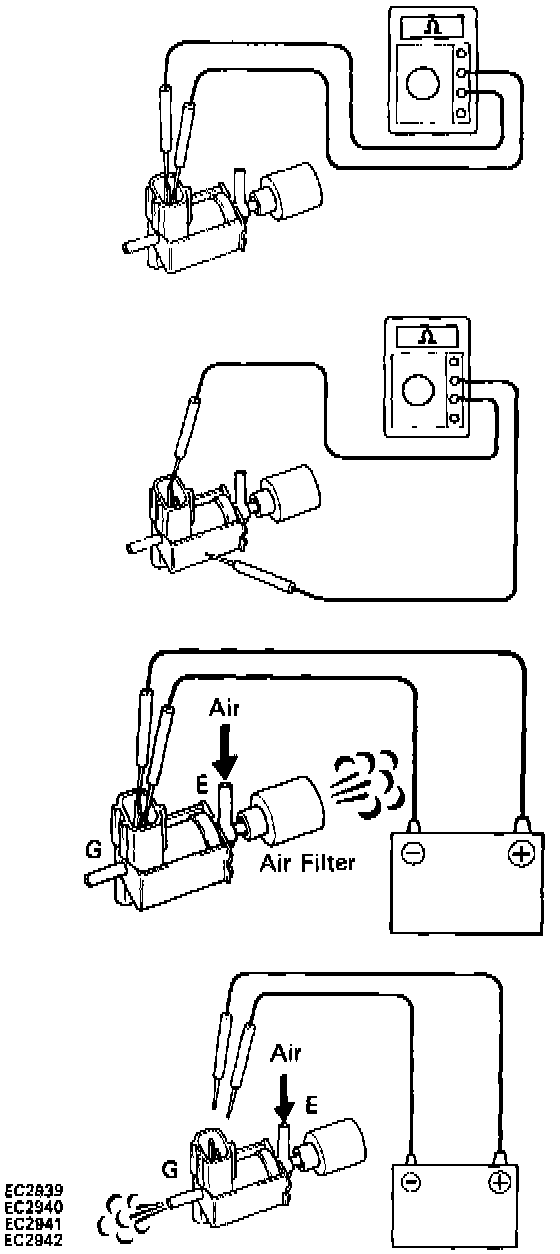Battery positive voltage is applied: the air from pipe E is flowing out through the air filter.
