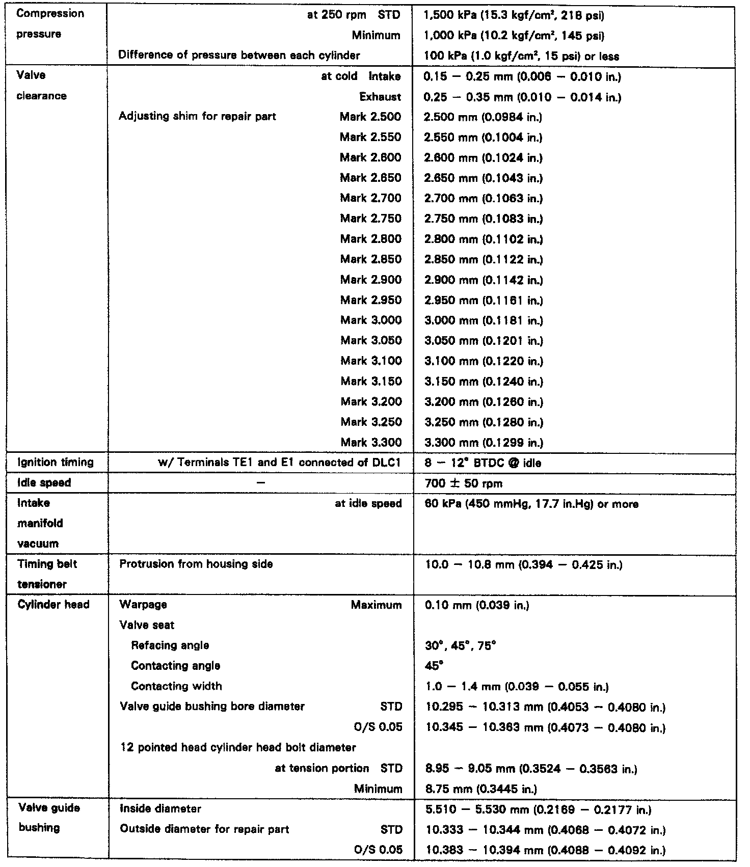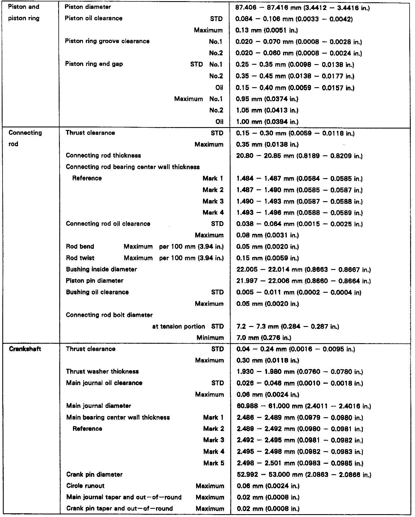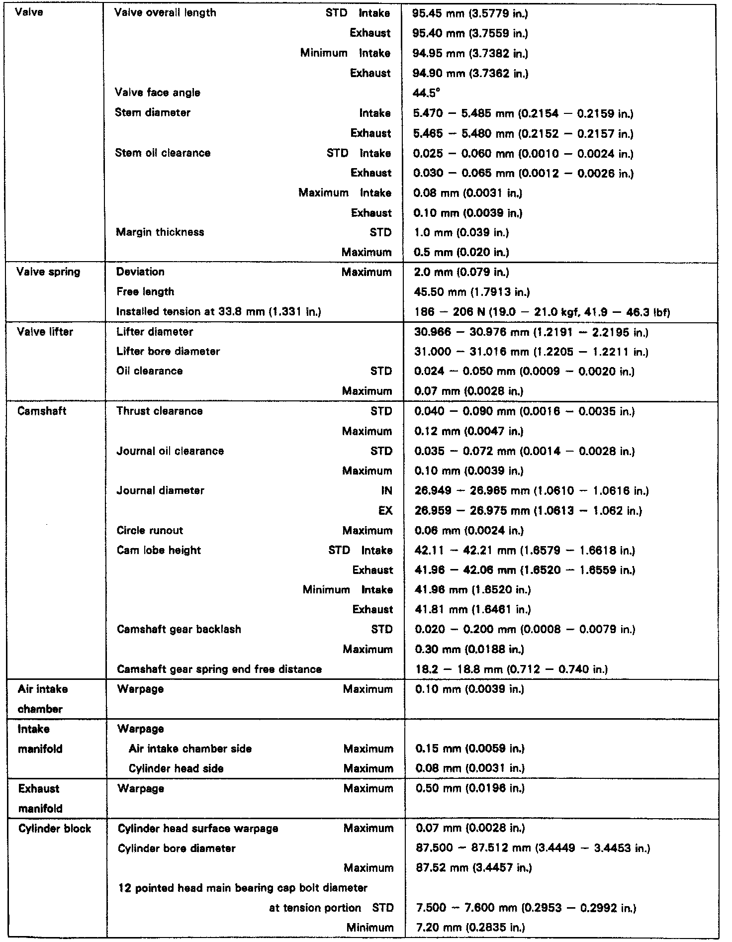 ENGINE SPECIFICATIONS