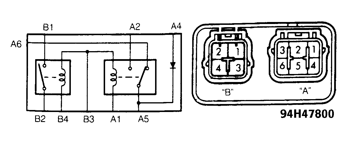 Disconnect ABS control relay connectors. Check for continuity (or resistance) between specified terminals. See appropriate ABS CONTROL RELAY TEST table. See Fig 1. If continuity or resistance is not as specified, replace control relay.