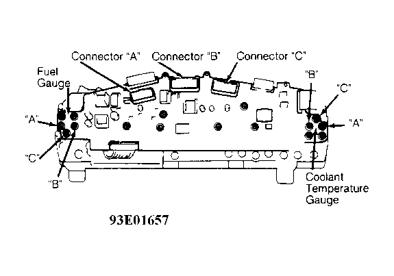 - If tachometer and fuel gauge operate, go to next step. If tachometer and fuel gauge do not operate, disconnect connector "B" from back of instrument cluster. See Figure. Check for open circuit between ground and terminal No. 10. See Figure. If circuit is okay, replace instrument cluster computer. See Figure.