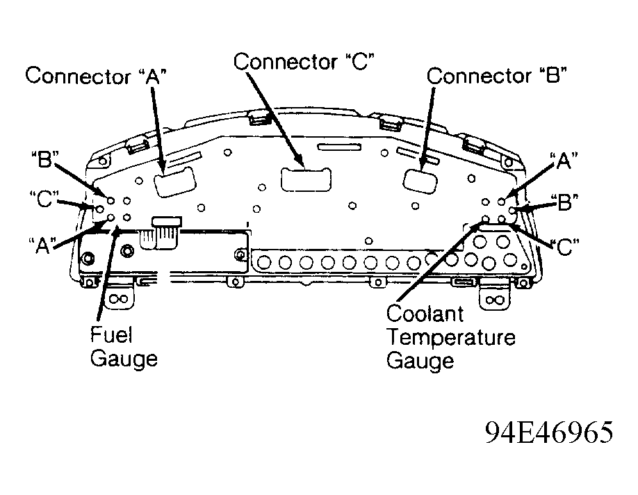 - Disconnect connector "C" from back of instrument cluster. See Figure. At harness side of connector "C", connect a jumper wire to terminal No. 1. See Figure. Connect other end of same jumper wire to corresponding terminal on instrument cluster side of connector "C".