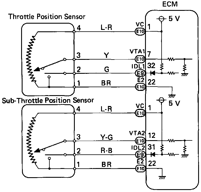 detects the throttle valve opening angle and sends signals to the Engine Control Module