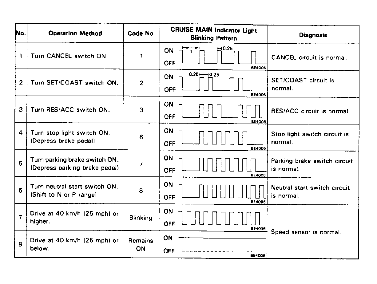 NOTE: If diagnostic mode cannot be entered, perform procedure for Code 32 or 34. See CODE 32 OR 34 (CRUISE CONTROL SWITCH CIRCUIT)  under CODE TESTING.