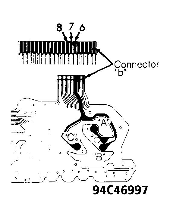 - If there is no continuity, replace circuit plate. If there is continuity, check for continuity between the following terminals of connectors "A" and "S" (component side of each connector). See Figure, Figure, Figure and Fig 2