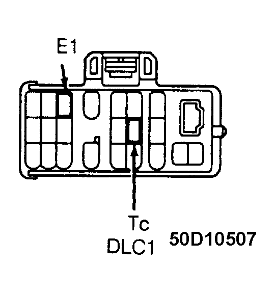 Turn ignition on. Remove short pin from Data Link Connector No. 1 (DLC1). Connect jumper wire between terminals Tc and E1 of Data Link Connector No. 2 (DLC2) or DLC1. See Figure or Figure. If voltage is not 10-14 volts, check for open or short in harness and connector between ABS and TRAC ECU, TRAC ECU and DLC2 or DLC1, or DLC2 and DLC1 to body ground. If harness and connector are okay, check and replace TRAC ECU. If harness and connector are not okay, inspect TRAC indicator light circuit.