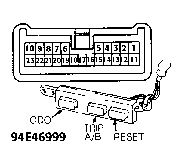 - With TRIP A/B button pressed, there should be continuity between terminals No. 17 and 19. With RESET button pressed, there should be continuity between terminals No. 18 and 19. With ODO button pressed, there should be continuity between terminals No. 16 and 19.