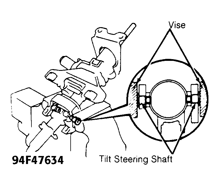 - Assemble steering column in reverse order of disassembly. Lubricate all pivot points and bearing surfaces. Using a vise, press in upper tube tilt steering shafts. See Fig 1.