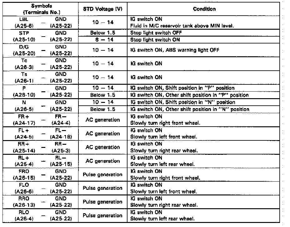 Fig. 44 ABS & TRAC ECU Terminal Values (Part 2 Of 2):