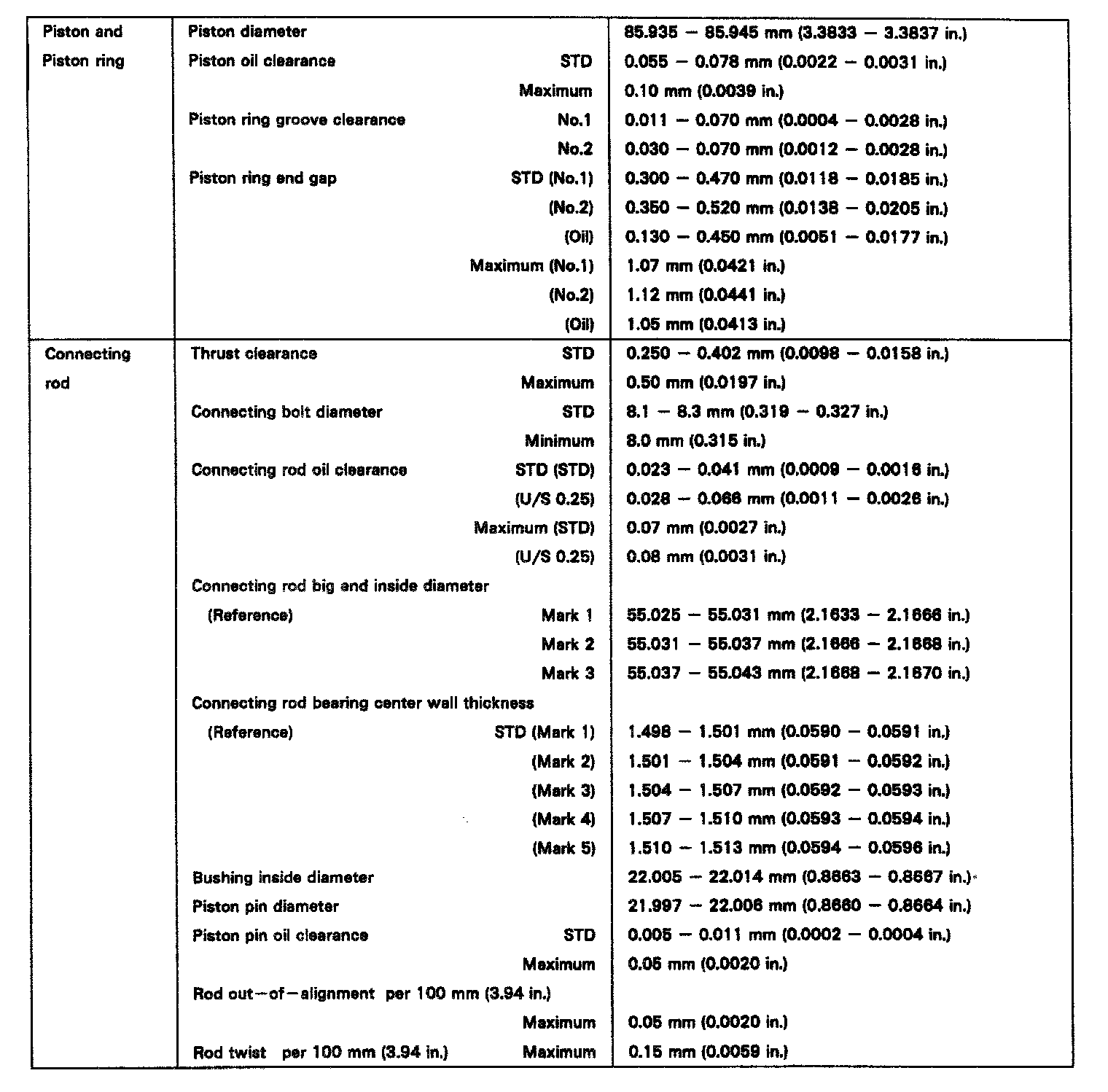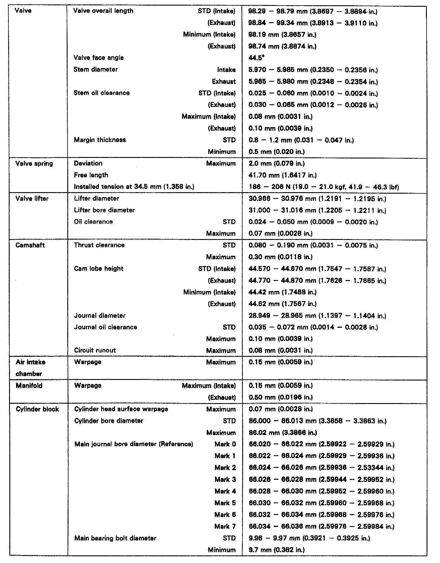 ENGINE SPECIFICATIONS