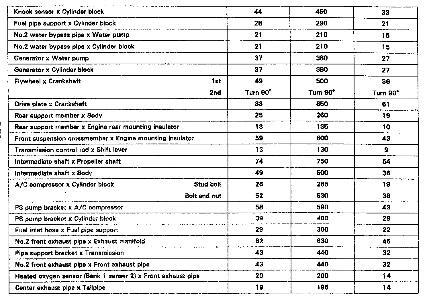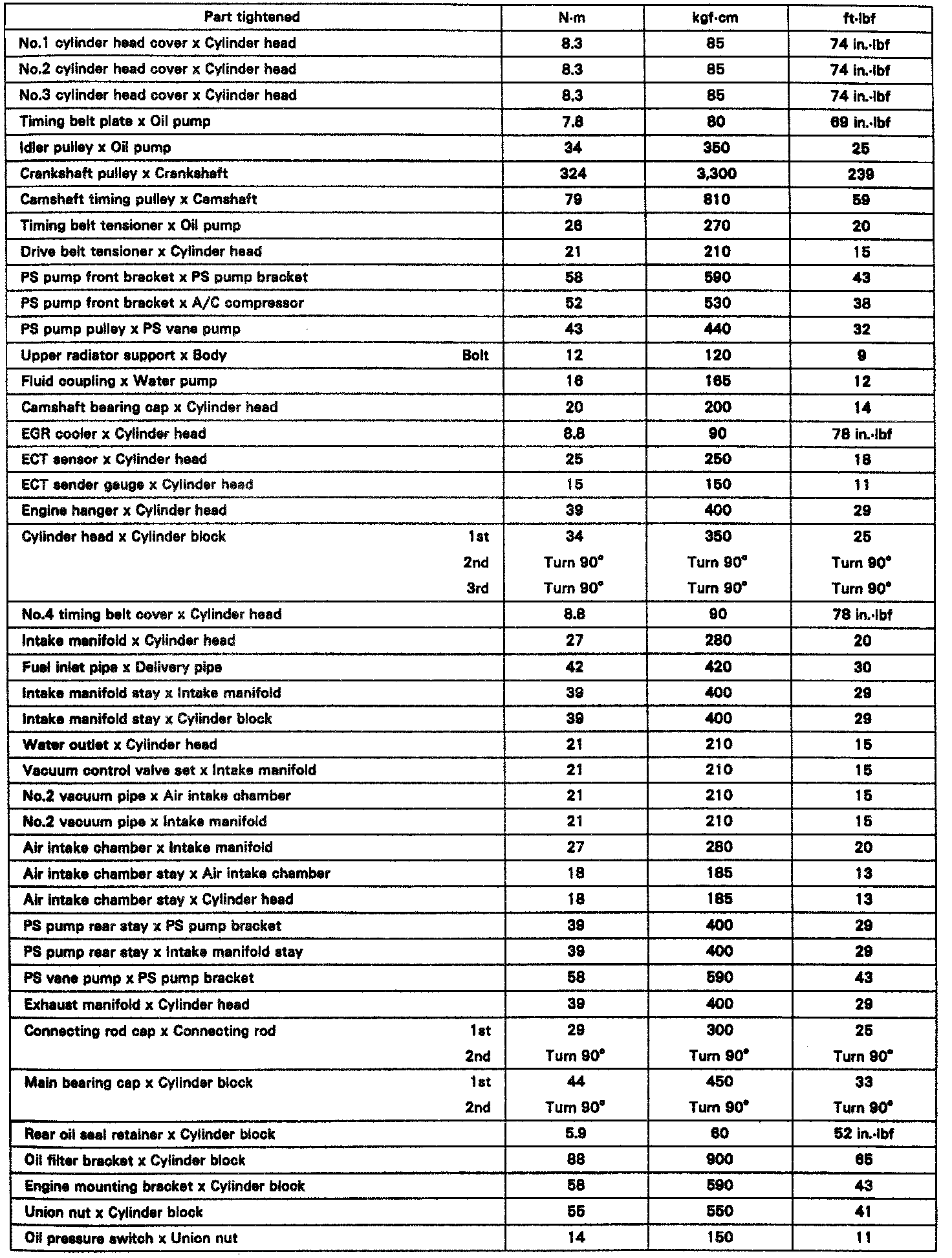 TIGHTENING SPECIFICATIONS