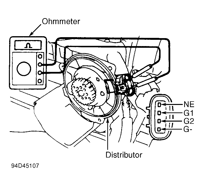 5. If resistance is within specification, check resistance across terminals of the following distributor sensor. See DISTRIBUTOR SENSOR RESISTANCE  table.