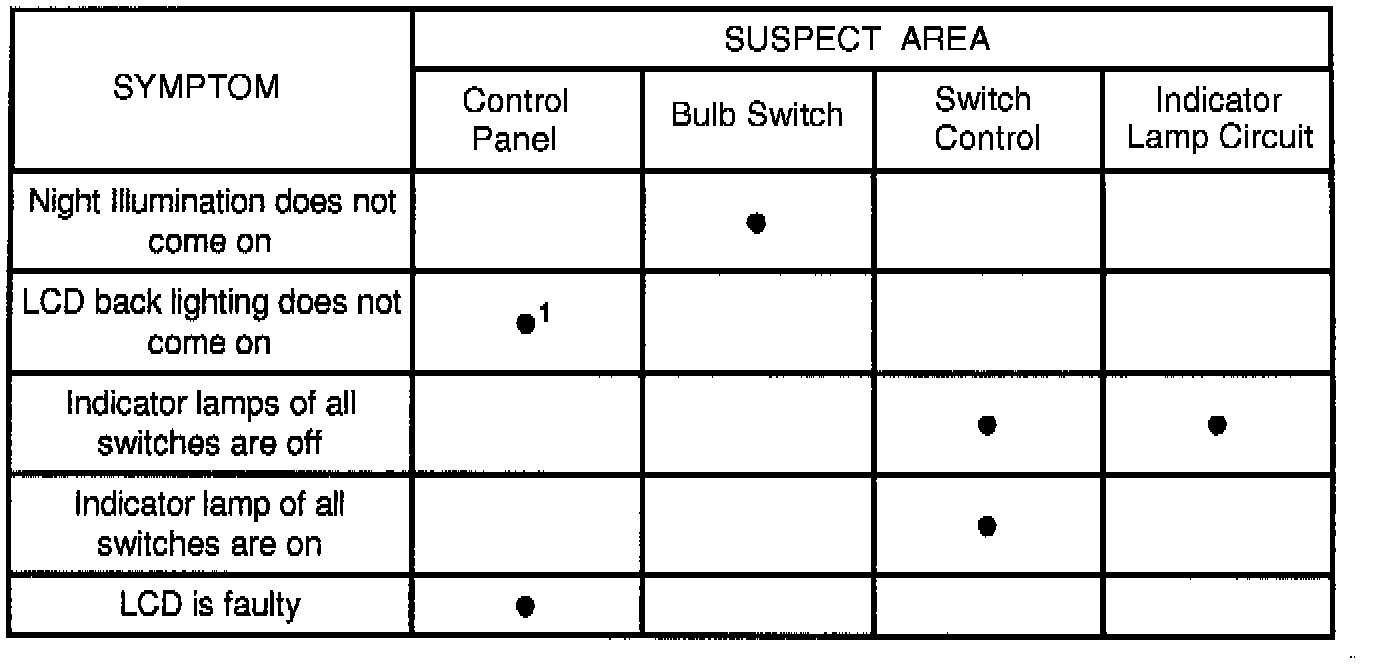 [1] LCD illumination bulbs are not serviceable, Control Switch must be replaced if illumination does not occur.