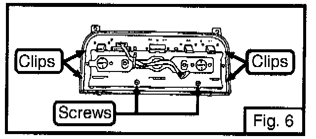 a. To replace the Control Switch remove 2 screws and release 4 clips (See Fig. 6).
