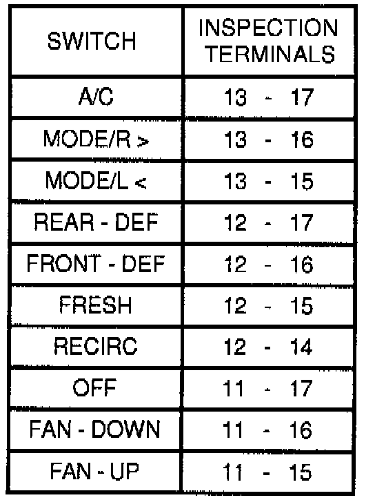 Use the matrix chart as a guide to repairs. Verify necessary inputs to the A/C Control Assembly from the vehicle prior to disassembly. Use the repair manual, A/C system section, to validate such as B+, ILL+, ground, etc..