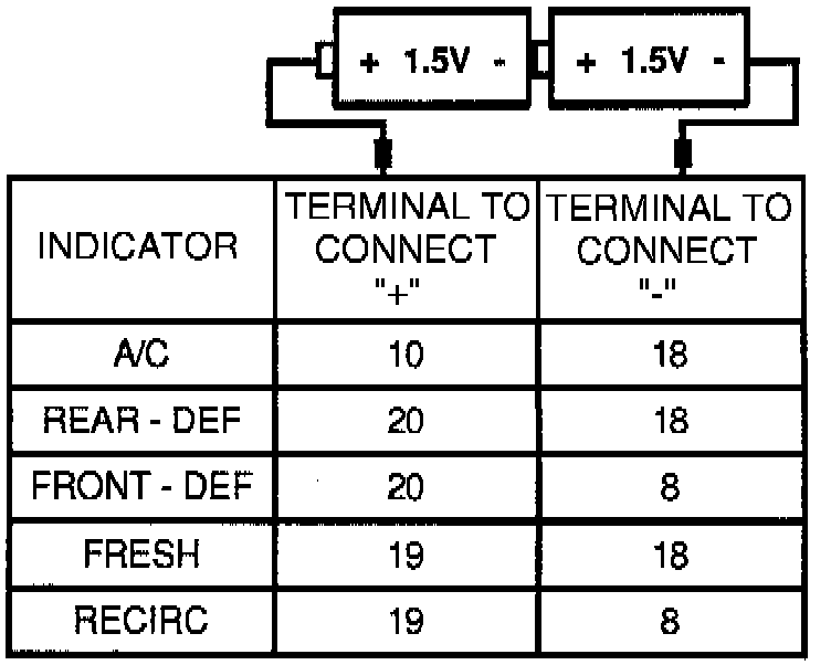 ^ Connect two 1.5 v dry cell batteries in series. Using the table, check that each suspect indicator lamp illuminates.