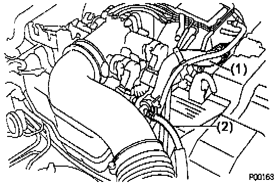 - Water bypass hose (from exhaust gas recirculation valve) to water bypass pipe (1)