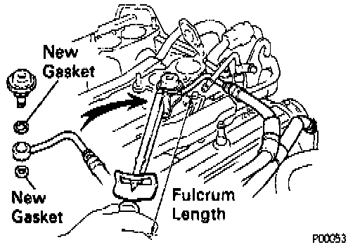 3. Install the return pipe with 2 new gaskets, union bolt and bolt.
