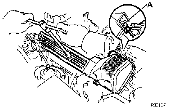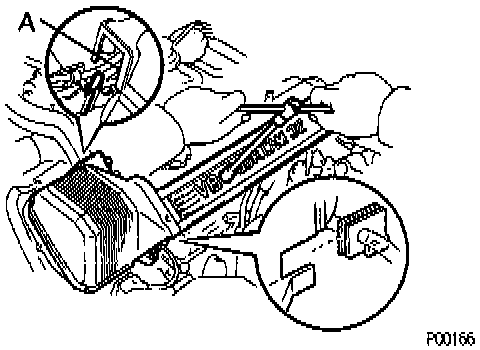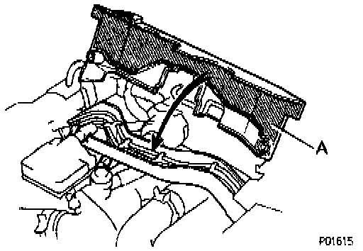 - Fit the portion A of the timing belt cover, matching it with the lower high-tension cord cover.