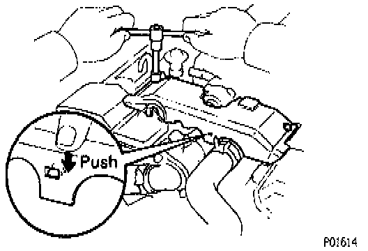 - Push the front side of the upper high-tension cord cover, and fit the front side claw groove of the upper high-tension cord cover to the claw of the lower high -tension cord cover.