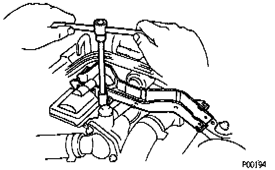 - Remove the 2 bolts, and disconnect the vacuum switching valve from the cylinder head and timing belt cover.