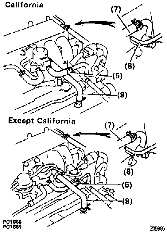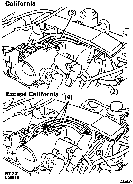 - 2 vacuum hoses (from vacuum switching valve for evaporative emissions) from vacuum pipe (4)