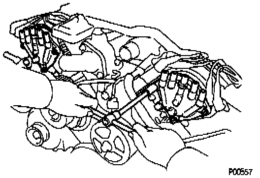 NOTICE: Connect the high-tension cord by pressing on the correct place as shown in the illustration. If not done this way, the high-tension cord will interfere with the camshaft timing pulley.