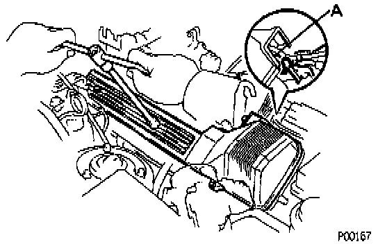 - Fit the portion A of the timing belt cover, matching it with the lower high-tension cord cover.